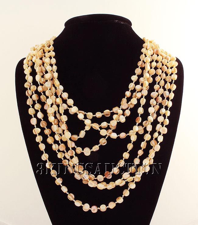 896CTW GOLDEN WHITE 8 ROW MOTHER OF PEARL NECKLACE **|**|** 20 Inches Corn Like Color Beads Mother of Pearl Necklace with MOP Circle Clasp ; MSRP: $100