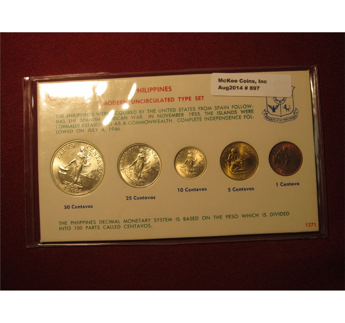 897. Philippines Modern Uncirculated Type Set, 5 coin set, coins are dated 1963-1964