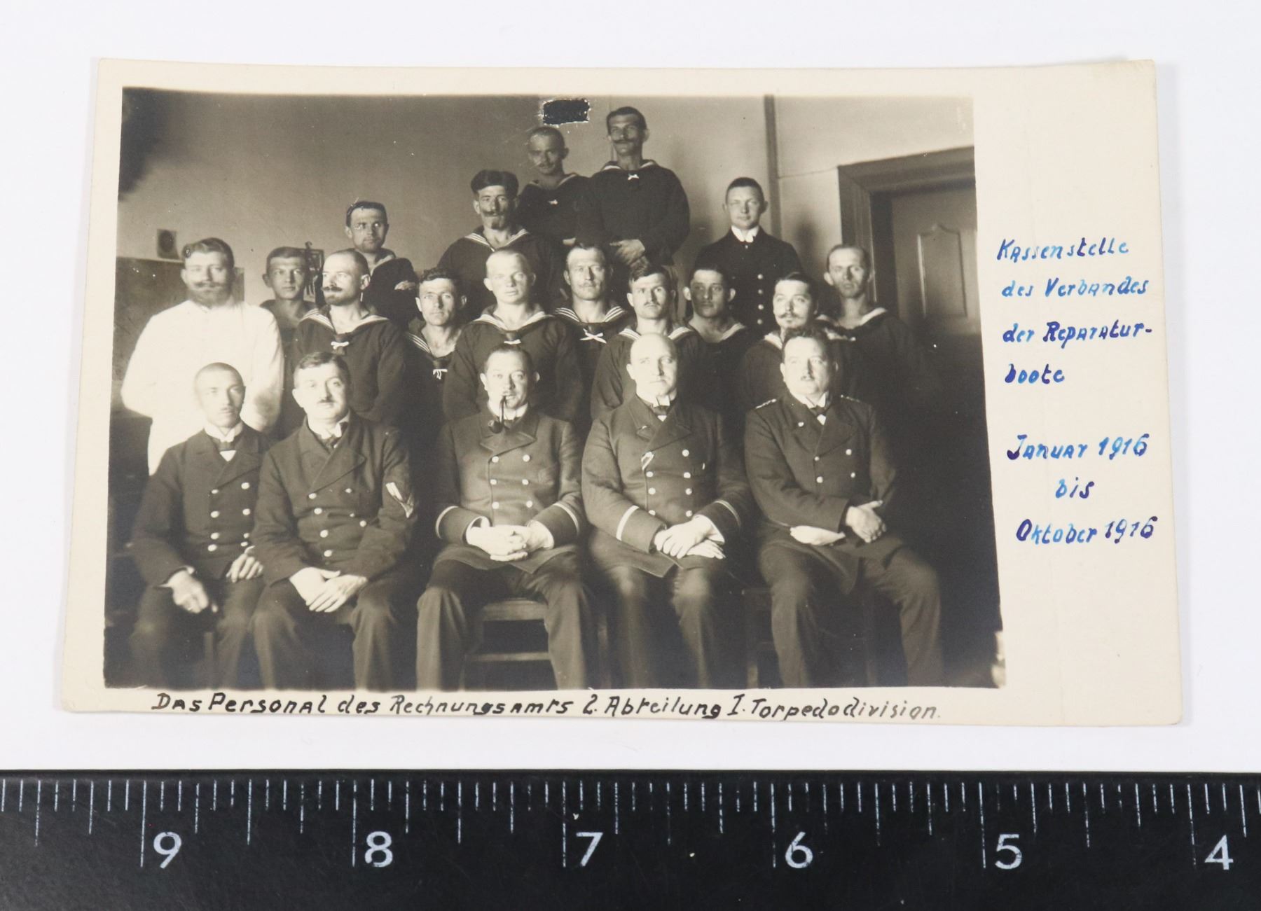 IDENTIFIED SIGNED FRONT+REVERSE TORPEDO DIVISION STAFF IN NAVAL UNIFORMS KRIEGSMARINE WORLD WAR ONE CENTRAL POWERS REAL PHOTO POST CARD RPPC IMPERIAL GERMAN GERMANY MILITARY