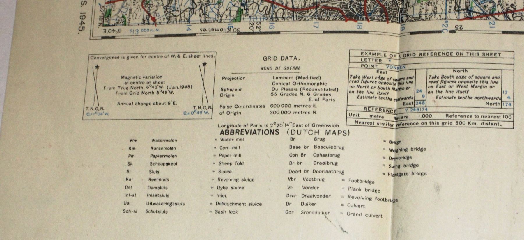 NETHERLANDS DUTCH MEASURES 30 INCHES LONG BY 23.5 INCHES WIDE WORLD WAR TWO ALLIED FORCES MAP