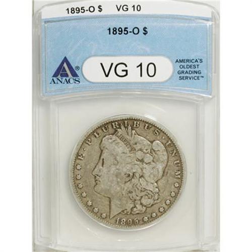 <!-- BEGIN: ICOLLECTOR - EBAY LOT HTML CODE --><style type='text/css'> #icoll_images_thumbnails, #icoll_images_mainimage, #icoll_otherlots { display: none; } div { font-family: arial, verdana, helvetica; } img { border: none; } .icoll_heading_title { background-color: #EFEFFF; color: #000; font-family: arial, verdana, helvetica; font-size: 12pt; font-style: normal; font-weight: bold; } </style><style type='text/css'>@import url(http://www.icollector.com/css/ebay/ebaylot_20070703.css);</style><script language='javascript' type='text/javascript'>function icollfunc_getelement(element_id) { var tmpelement = null; if(document.getElementById) tmpelement = document.getElementById(element_id); if(tmpelement == null) tmpelement = document[element_id]; return tmpelement; }var icollvar_mainpic = null; function icollfunc_initimages() { icollfunc_getelement('mainPicture').style.display = 'none'; icollvar_mainpic = icollfunc_getelement('icoll_images_mainimage'); var body_onload = document.body.attributes['onload']; document.body.setAttribute('onload', (body_onload ? body_onload.nodeValue : '') + 'icollfunc_fixoperaimgbug();'); }function icollfunc_changeimage(imgurl) { if(icollvar_mainpic != null) icollvar_mainpic.src = imgurl; }function icollfunc_fixoperaimgbug() { if(window.opera) { var imgobjs = icollfunc_getelement('icoll_images_thumbnails').getElementsByTagName('img'); for(var i=0; i<imgobjs.length; i++) { var w = imgobjs[i].clientWidth; if(w > 0) imgobjs[i].style.width = w + 'px'; } } }</script><script language='javascript' type='text/javascript'> var useragent = escape(navigator.userAgent); var appname = escape(navigator.appName); var dateobj = new Date(); var datetime = escape(dateobj.getFullYear()+'-'+(dateobj.getMonth()+1)+'-'+dateobj.getDate()+' '+dateobj.getHours()+':'+dateobj.getMinutes()); var referrer = ''; if(document.referrer && document.referrer != null) referrer = escape(document.referrer); new Image().src = 'http://www.icollector.com/stats/ebaylot.ashx?id=7140280&ua='+useragent+'&an='+appname+'&dt='+datetime+'&tz='+dateobj.getTimezoneOffset()+'&re='+referrer;</script><div id='icoll_images'><div id='icoll_images_prev'><a href='http://cgi.liveauctions.ebay.com/ws/eBayISAPI.dll?ViewItem&item=170135780861'><img src='http://www.ha.com/common/proxyImage.php?ebay=445-39100-1-75' alt='' /><img src='http://icollector.com/graphics/ebay_leftarrow.gif' alt='' class='arrow' /></a><div id='icoll_images_prev_info'>Prev Lot</div></div><div id='icoll_images_next'><a href='http://cgi.liveauctions.ebay.com/ws/eBayISAPI.dll?ViewItem&item=170135780884'><img src='http://www.ha.com/common/proxyImage.php?ebay=445-82047-1-75' alt='' /><img src='http://icollector.com/graphics/ebay_rightarrow.gif' alt='' class='arrow' /></a><div id='icoll_images_next_info'>Next Lot</div></div><div id='icoll_images_thumbnails'><a href='http://www.ha.com/common/proxyImage.php?ebay=445-121069-1-75' target='_blank' onmouseover="icollfunc_changeimage('http://www.ha.com/common/proxyImage.php?ebay=445-121069-1-75');"><img src='http://www.ha.com/common/proxyImage.php?ebay=445-121069-1-75' alt='' /></a><a href='http://www.ha.com/common/proxyImage.php?ebay=445-121069-2-75' target='_blank' onmouseover="icollfunc_changeimage('http://www.ha.com/common/proxyImage.php?ebay=445-121069-2-75');"><img src='http://www.ha.com/common/proxyImage.php?ebay=445-121069-2-75' alt='' /></a><div id='icoll_images_thumbnails_info'>Hover thumbnail to view large image below. Click thumbnail to view full image in new window.</div></div><div id='icoll_images_mainimage_container'><img id='icoll_images_mainimage' alt='' src='http://www.ha.com/common/proxyImage.php?ebay=445-121069-1-75'></div></div><script language='javascript' type='text/javascript'>icollfunc_initimages();</script><div id='icoll_description'><B>1895-O $1 VG10 ANACS.</B></I> NGC Census: (27/2499). PCGS Population (37/2548). Mintage: 450,000. Numismedia Wsl. Price for NGC/PCGS coin in VG10: $292. (#7236)<BR><BR><B>Coin Engraver:</B> George T. Morgan<BR><BR><b>Shipping:</b> Coins & Currency (<a target="_blank" href="http://www.heritageauctions.com/common/shipping.php">view shipping information</a>\)</div><div id='icoll_notices'><div class='icoll_heading_left'></div><div class='icoll_heading'><div class='icoll_heading_title'>Notices</div></div><div class='icoll_heading_right'></div><div id='icoll_notices_info'><B>Important notice:</B> Heritage usually auctions material at the rate of 200-250 lots per hour. On some occasions eBay Live bid software or the Internet may not be able to keep up with the pace of the auction. We recommend placing a realistic absentee bid now as insurance to avoid disappointment. Occasionally the auctioneer may eliminate or reject an eBay Live bid, and the auctioneer may also reopen a lot after the close of the eBay live bidding (usually because we missed an audience bid), and may reject your bid even if it shows you as the winning bidder. By bidding via eBay Live, you agree that Heritage may award the lot to another bidder at its sole discretion under the circumstances described above or any other reasonable circumstances. Since eBay bids are not shown to us until we open the lot on the floor, we treat those bids just like floor bids. In most cases the floor responds before the eBay bid is presented to us, due to Internet lag time, so for consistency we have made it a policy that floor bids are always considered first over tie eBay live bids. Also please note that all Heritage lots purchased through eBay Live carry a 20% Buyer's Premium with a $9 minimum Buyer's Premium. Please make sure you read the Terms and Conditions before you bid. This lot is being auctioned in conjunction with a live floor auction by Heritage Auctions. All final auction and invoice information will be supplied by Heritage Auctions, and all other information should be considered preliminary. <BR><BR><B>Winning Notification and Billing:</B> After the FINAL session in this auction is complete, Heritage w