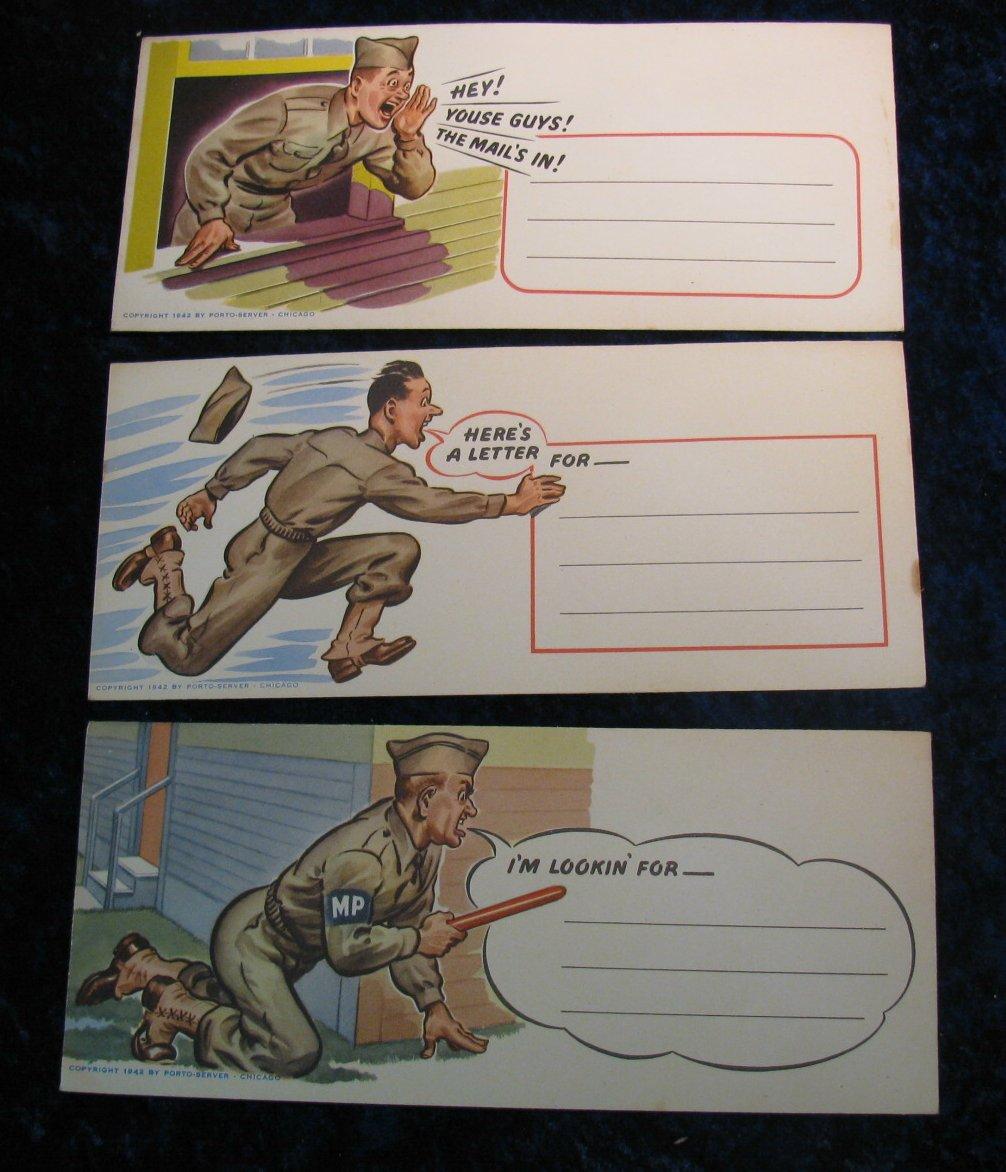 898. (3) 1942 Large WWII Patriotic Envelopes. By Porto-Server Chicago.