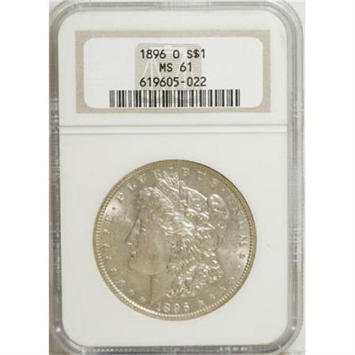 <!-- BEGIN: ICOLLECTOR - EBAY LOT HTML CODE --><style type='text/css'> #icoll_images_thumbnails, #icoll_images_mainimage, #icoll_otherlots { display: none; } div { font-family: arial, verdana, helvetica; } img { border: none; } .icoll_heading_title { background-color: #EFEFFF; color: #000; font-family: arial, verdana, helvetica; font-size: 12pt; font-style: normal; font-weight: bold; } </style><style type='text/css'>@import url(http://www.icollector.com/css/ebay/ebaylot_20070703.css);</style><script language='javascript' type='text/javascript'>function icollfunc_getelement(element_id) { var tmpelement = null; if(document.getElementById) tmpelement = document.getElementById(element_id); if(tmpelement == null) tmpelement = document[element_id]; return tmpelement; }var icollvar_mainpic = null; function icollfunc_initimages() { icollfunc_getelement('mainPicture').style.display = 'none'; icollvar_mainpic = icollfunc_getelement('icoll_images_mainimage'); var body_onload = document.body.attributes['onload']; document.body.setAttribute('onload', (body_onload ? body_onload.nodeValue : '') + 'icollfunc_fixoperaimgbug();'); }function icollfunc_changeimage(imgurl) { if(icollvar_mainpic != null) icollvar_mainpic.src = imgurl; }function icollfunc_fixoperaimgbug() { if(window.opera) { var imgobjs = icollfunc_getelement('icoll_images_thumbnails').getElementsByTagName('img'); for(var i=0; i<imgobjs.length; i++) { var w = imgobjs[i].clientWidth; if(w > 0) imgobjs[i].style.width = w + 'px'; } } }</script><script language='javascript' type='text/javascript'> var useragent = escape(navigator.userAgent); var appname = escape(navigator.appName); var dateobj = new Date(); var datetime = escape(dateobj.getFullYear()+'-'+(dateobj.getMonth()+1)+'-'+dateobj.getDate()+' '+dateobj.getHours()+':'+dateobj.getMinutes()); var referrer = ''; if(document.referrer && document.referrer != null) referrer = escape(document.referrer); new Image().src = 'http://www.icollector.com/stats/ebaylot.ashx?id=7140306&ua='+useragent+'&an='+appname+'&dt='+datetime+'&tz='+dateobj.getTimezoneOffset()+'&re='+referrer;</script><div id='icoll_images'><div id='icoll_images_prev'><a href='http://cgi.liveauctions.ebay.com/ws/eBayISAPI.dll?ViewItem&item=170135781111'><img src='http://www.ha.com/common/proxyImage.php?ebay=445-149014-1-75' alt='' /><img src='http://icollector.com/graphics/ebay_leftarrow.gif' alt='' class='arrow' /></a><div id='icoll_images_prev_info'>Prev Lot</div></div><div id='icoll_images_next'><a href='http://cgi.liveauctions.ebay.com/ws/eBayISAPI.dll?ViewItem&item=170135781151'><img src='http://www.ha.com/common/proxyImage.php?ebay=445-39110-1-75' alt='' /><img src='http://icollector.com/graphics/ebay_rightarrow.gif' alt='' class='arrow' /></a><div id='icoll_images_next_info'>Next Lot</div></div><div id='icoll_images_thumbnails'><a href='http://www.ha.com/common/proxyImage.php?ebay=445-133015-1-75' target='_blank' onmouseover="icollfunc_changeimage('http://www.ha.com/common/proxyImage.php?ebay=445-133015-1-75');"><img src='http://www.ha.com/common/proxyImage.php?ebay=445-133015-1-75' alt='' /></a><a href='http://www.ha.com/common/proxyImage.php?ebay=445-133015-2-75' target='_blank' onmouseover="icollfunc_changeimage('http://www.ha.com/common/proxyImage.php?ebay=445-133015-2-75');"><img src='http://www.ha.com/common/proxyImage.php?ebay=445-133015-2-75' alt='' /></a><div id='icoll_images_thumbnails_info'>Hover thumbnail to view large image below. Click thumbnail to view full image in new window.</div></div><div id='icoll_images_mainimage_container'><img id='icoll_images_mainimage' alt='' src='http://www.ha.com/common/proxyImage.php?ebay=445-133015-1-75'></div></div><script language='javascript' type='text/javascript'>icollfunc_initimages();</script><div id='icoll_description'><B>1896-O $1 MS61 NGC.</B></I> NGC Census: (335/459). PCGS Population (246/706). Mintage: 4,900,000. Numismedia Wsl. Price for NGC/PCGS coin in MS61: $1,575. (#7242)<BR><BR><B>Coin Engraver:</B> George T. Morgan<BR><BR><b>Shipping:</b> Coins & Currency (<a target="_blank" href="http://www.heritageauctions.com/common/shipping.php">view shipping information</a>\)</div><div id='icoll_notices'><div class='icoll_heading_left'></div><div class='icoll_heading'><div class='icoll_heading_title'>Notices</div></div><div class='icoll_heading_right'></div><div id='icoll_notices_info'><B>Important notice:</B> Heritage usually auctions material at the rate of 200-250 lots per hour. On some occasions eBay Live bid software or the Internet may not be able to keep up with the pace of the auction. We recommend placing a realistic absentee bid now as insurance to avoid disappointment. Occasionally the auctioneer may eliminate or reject an eBay Live bid, and the auctioneer may also reopen a lot after the close of the eBay live bidding (usually because we missed an audience bid), and may reject your bid even if it shows you as the winning bidder. By bidding via eBay Live, you agree that Heritage may award the lot to another bidder at its sole discretion under the circumstances described above or any other reasonable circumstances. Since eBay bids are not shown to us until we open the lot on the floor, we treat those bids just like floor bids. In most cases the floor responds before the eBay bid is presented to us, due to Internet lag time, so for consistency we have made it a policy that floor bids are always considered first over tie eBay live bids. Also please note that all Heritage lots purchased through eBay Live carry a 20% Buyer's Premium with a $9 minimum Buyer's Premium. Please make sure you read the Terms and Conditions before you bid. This lot is being auctioned in conjunction with a live floor auction by Heritage Auctions. All final auction and invoice information will be supplied by Heritage Auctions, and all other information should be considered preliminary. <BR><BR><B>Winning Notification and Billing:</B> After the FINAL session in this auction is complete, Heritag