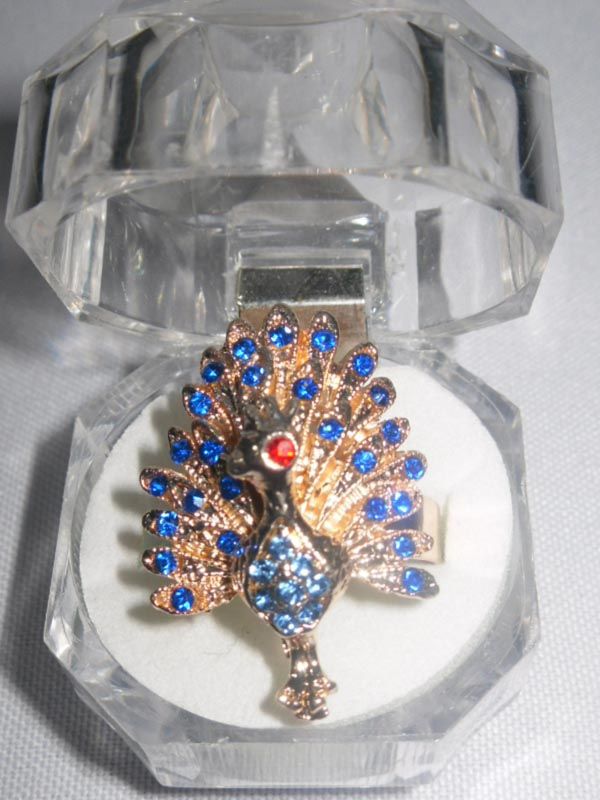 8CTW ROYAL BLUE PEACOCK ADJUSTABLE BRASS RING **|**|** 8CTW ROYAL BLUE PEACOCK ADJUSTABLE BRASS RING ; MSRP: $150