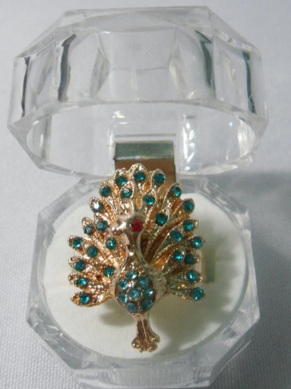 8CTW TEAL PEACOCK ADJUSTABLE BRASS RING **|**|** 8CTW TEAL PEACOCK ADJUSTABLE BRASS RING ; MSRP: $200