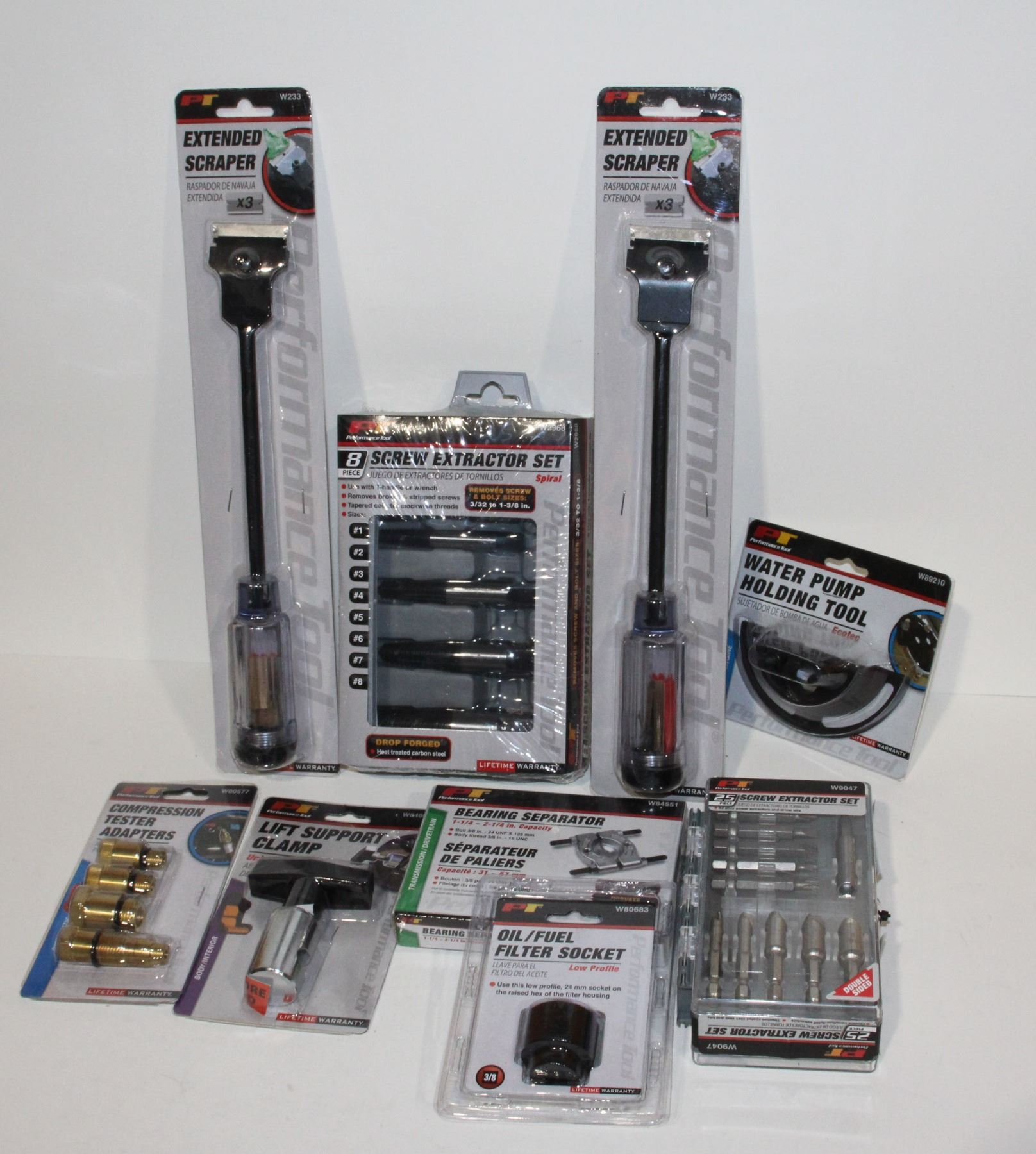 8PC SCREW EXTRACTOR SET, EXTENDED SCRAPER,