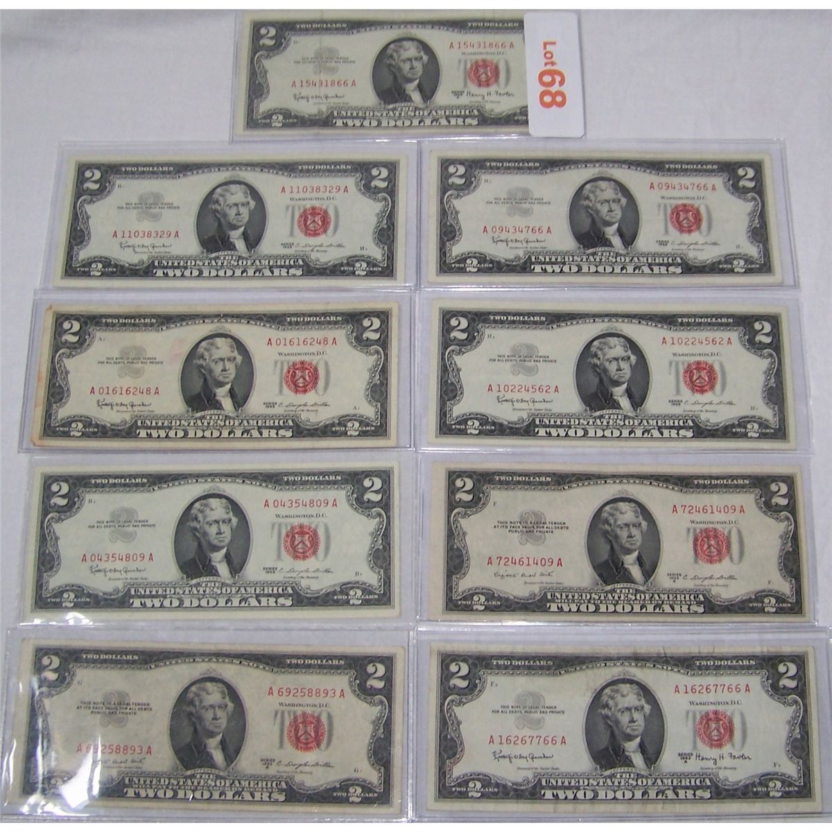 (8X$) CHOICE $2.00 NOTES SOME UNCIRCULATED SERIES 1953, 1963 RED LABEL