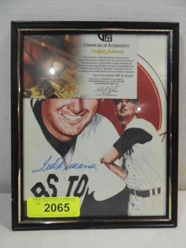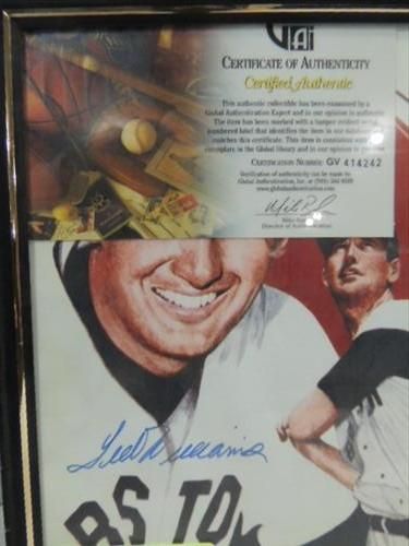 8X10 BASEBALL ILLUSTRATION AUTOGRAPH TED WILLIAMS. INCLUDES COA FROM GAI #GV 414242. AS SHOWN. VIEW PICTURE FOR DETAIL.