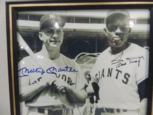 8X10 BASEBALL PHOTO 2 AUTOGRAPHS MICKEY MANTLE & WILLIE MAYS. INCLUDES COA STICKER FROM GAI GV413528. AS SHOWN. VIEW PICTURE FOR DETAIL.