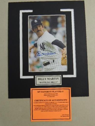 8X10 BASEBALL PHOTO AUTOGRAPHED BILLY MARTIN COA. INCLUDES COA FROM MFP II. AS SHOWN. VIEW PICTURE FOR DETAIL. PLEASE BE ADVISED, AND INFORMED REGARDING SIGNATURES OR AUTOGRAPHS THAT WE SELL AT AUCTION: WE ARE NOT AUTHENTICATORS, AND WE DO NOT AUTHENTICATE, OR VALIDATE ANY AUTOGRAPHS OR SIGNATURES THAT WE OFFER AT AUCTION. SOME AUTOGRAPHS OR SIGNATURES MAY COME WITH AN AUTHENTICATION FROM ANY ONE OF LITERALLY HUNDREDS OF AUTHENTICATORS ACROSS THE COUNTRY, AND AROUND THE WORLD. WE DO NOT ENDORSE ANY AUTHENTICATOR, NOR DO WE GUARANTEE THAT ANY AUTOGRAPH OR SIGNATURE IS AUTHENTIC, OR THAT IT WILL PASS AUTHENTICATION BY ANY AUTHENTICATOR. ALL AUTOGRAPHS OR SIGNATURES ARE SOLD