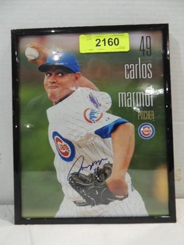 8X10 FRAMED BASEBALL PHOTO AUTOGRAPHED CARLOS MARMOL. NO COA. AS SHOWN. VIEW PICTURE FOR DETAIL. PLEASE BE ADVISED, AND INFORMED REGARDING SIGNATURES OR AUTOGRAPHS THAT WE SELL AT AUCTION: WE ARE NOT AUTHENTICATORS, AND WE DO NOT AUTHENTICATE, OR VALIDATE ANY AUTOGRAPHS OR SIGNATURES THAT WE OFFER AT AUCTION. SOME AUTOGRAPHS OR SIGNATURES MAY COME WITH AN AUTHENTICATION FROM ANY ONE OF LITERALLY HUNDREDS OF AUTHENTICATORS ACROSS THE COUNTRY, AND AROUND THE WORLD. WE DO NOT ENDORSE ANY AUTHENTICATOR, NOR DO WE GUARANTEE THAT ANY AUTOGRAPH OR SIGNATURE IS AUTHENTIC, OR THAT IT WILL PASS AUTHENTICATION BY ANY AUTHENTICATOR. ALL AUTOGRAPHS OR SIGNATURES ARE SOLD