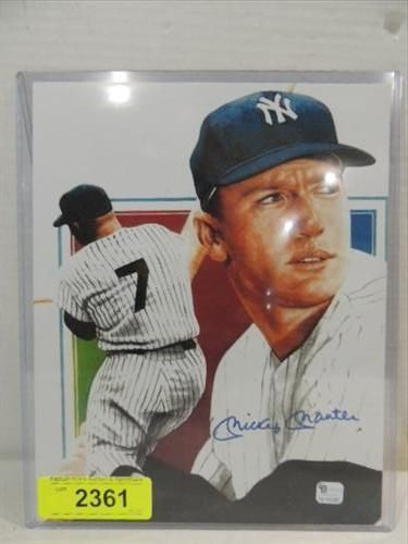 8X10 BASEBALL PRINT AUTOGRAPHED MICKEY MANTLE COA. INCLUDES COA FROM GAI #GV 412325. AS SHOWN. VIEW PICTURE FOR DETAIL. PLEASE BE ADVISED, AND INFORMED REGARDING SIGNATURES OR AUTOGRAPHS THAT WE SELL AT AUCTION: WE ARE NOT AUTHENTICATORS, AND WE DO NOT AUTHENTICATE, OR VALIDATE ANY AUTOGRAPHS OR SIGNATURES THAT WE OFFER AT AUCTION. SOME AUTOGRAPHS OR SIGNATURES MAY COME WITH AN AUTHENTICATION FROM ANY ONE OF LITERALLY HUNDREDS OF AUTHENTICATORS ACROSS THE COUNTRY, AND AROUND THE WORLD. WE DO NOT ENDORSE ANY AUTHENTICATOR, NOR DO WE GUARANTEE THAT ANY AUTOGRAPH OR SIGNATURE IS AUTHENTIC, OR THAT IT WILL PASS AUTHENTICATION BY ANY AUTHENTICATOR. ALL AUTOGRAPHS OR SIGNATURES ARE SOLD