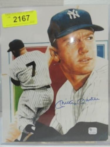 8X10 BASEBALL PRINT AUTOGRAPHED MICKEY MANTLE COA. INCLUUDES A COA FROM GAI # GV 412279. AS SHOWN. VIEW PICTURE FOR DETAIL.