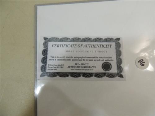8X10 BASKETBALL PHOTO AUTOGRAPH A'MARE STOUDEMIRE. INCLUDES COA FROM TREADWAY AUTHENTICS. AS SHOWN. VIEW PICTURE FOR DETAIL. PLEASE BE ADVISED, AND INFORMED REGARDING SIGNATURES OR AUTOGRAPHS THAT WE SELL AT AUCTION: WE ARE NOT AUTHENTICATORS, AND WE DO NOT AUTHENTICATE, OR VALIDATE ANY AUTOGRAPHS OR SIGNATURES THAT WE OFFER AT AUCTION. SOME AUTOGRAPHS OR SIGNATURES MAY COME WITH AN AUTHENTICATION FROM ANY ONE OF LITERALLY HUNDREDS OF AUTHENTICATORS ACROSS THE COUNTRY, AND AROUND THE WORLD. WE DO NOT ENDORSE ANY AUTHENTICATOR, NOR DO WE GUARANTEE THAT ANY AUTOGRAPH OR SIGNATURE IS AUTHENTIC, OR THAT IT WILL PASS AUTHENTICATION BY ANY AUTHENTICATOR. ALL AUTOGRAPHS OR SIGNATURES ARE SOLD