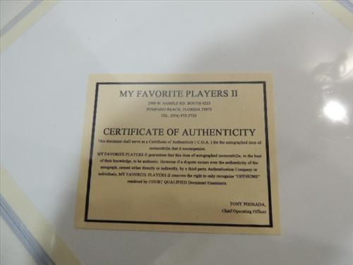 "AS IS, WHERE IS" WITHOUT ANY GUARANTEES. THERE WILL BE NO REFUNDS ON AUTOGRAPHS OR SIGNATURES, AND WE WILL NOT TAKE ANY RESPONSIBILITY FOR WHETHER OR NOT ANY AUTOGRAPH, OR SIGNATURE IS AUTHENTIC. THIS APPLIES TO ALL AUTOGRAPHS, OR SIGNATURES OFFERED IN THIS OR ANY FUTURE AUCTION.
