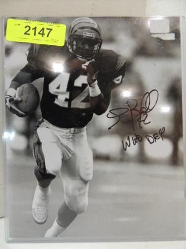 8X10 FOOTBALL PHOTO AUTOGRAPHED ERIC BELL COA. INCLUDES COA FROM PRIMETIME COLLECTIONS. AS SHOWN. VIEW PICTURE FOR DETAIL.