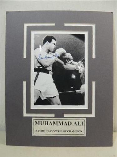8X10 MATTED BOXING PRINT AUTOGRAPHED MUHAMMAD ALI. INCLUDES COA FROM MYST-O-GRAPH. AS SHOWN. VIEW PICTURE FOR DETAIL. PLEASE BE ADVISED, AND INFORMED REGARDING SIGNATURES OR AUTOGRAPHS THAT WE SELL AT AUCTION: WE ARE NOT AUTHENTICATORS, AND WE DO NOT AUTHENTICATE, OR VALIDATE ANY AUTOGRAPHS OR SIGNATURES THAT WE OFFER AT AUCTION. SOME AUTOGRAPHS OR SIGNATURES MAY COME WITH AN AUTHENTICATION FROM ANY ONE OF LITERALLY HUNDREDS OF AUTHENTICATORS ACROSS THE COUNTRY, AND AROUND THE WORLD. WE DO NOT ENDORSE ANY AUTHENTICATOR, NOR DO WE GUARANTEE THAT ANY AUTOGRAPH OR SIGNATURE IS AUTHENTIC, OR THAT IT WILL PASS AUTHENTICATION BY ANY AUTHENTICATOR. ALL AUTOGRAPHS OR SIGNATURES ARE SOLD