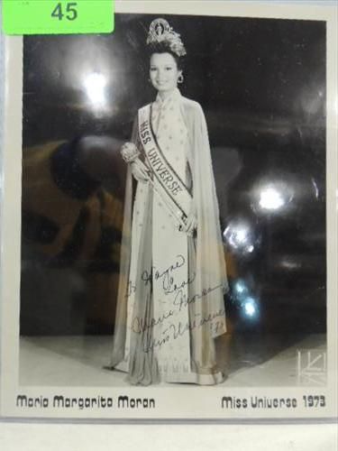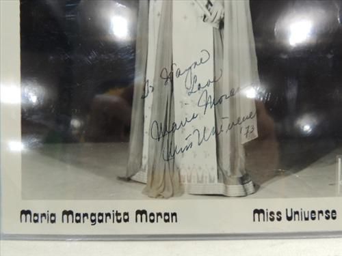 8X10 1973 MISS UNIVERSE PHOTO AUTOGRAPHED MARIA MARGARITA MORAN. NO COA. AS SHOWN. VIEW PICTURE FOR DETAIL. PLEASE BE ADVISED, AND INFORMED REGARDING SIGNATURES OR AUTOGRAPHS THAT WE SELL AT AUCTION: WE ARE NOT AUTHENTICATORS, AND WE DO NOT AUTHENTICATE, OR VALIDATE ANY AUTOGRAPHS OR SIGNATURES THAT WE OFFER AT AUCTION. SOME AUTOGRAPHS OR SIGNATURES MAY COME WITH AN AUTHENTICATION FROM ANY ONE OF LITERALLY HUNDREDS OF AUTHENTICATORS ACROSS THE COUNTRY, AND AROUND THE WORLD. WE DO NOT ENDORSE ANY AUTHENTICATOR, NOR DO WE GUARANTEE THAT ANY AUTOGRAPH OR SIGNATURE IS AUTHENTIC, OR THAT IT WILL PASS AUTHENTICATION BY ANY AUTHENTICATOR. ALL AUTOGRAPHS OR SIGNATURES ARE SOLD