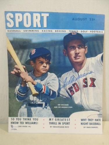 8X10 SPORT MAG COVER AUTOGRAPH TED WILLIAMS. NO COA. AS SHOWN. VIEW PICTURE FOR DETAIL. PLEASE BE ADVISED, AND INFORMED REGARDING SIGNATURES OR AUTOGRAPHS THAT WE SELL AT AUCTION: WE ARE NOT AUTHENTICATORS, AND WE DO NOT AUTHENTICATE, OR VALIDATE ANY AUTOGRAPHS OR SIGNATURES THAT WE OFFER AT AUCTION. SOME AUTOGRAPHS OR SIGNATURES MAY COME WITH AN AUTHENTICATION FROM ANY ONE OF LITERALLY HUNDREDS OF AUTHENTICATORS ACROSS THE COUNTRY, AND AROUND THE WORLD. WE DO NOT ENDORSE ANY AUTHENTICATOR, NOR DO WE GUARANTEE THAT ANY AUTOGRAPH OR SIGNATURE IS AUTHENTIC, OR THAT IT WILL PASS AUTHENTICATION BY ANY AUTHENTICATOR. ALL AUTOGRAPHS OR SIGNATURES ARE SOLD