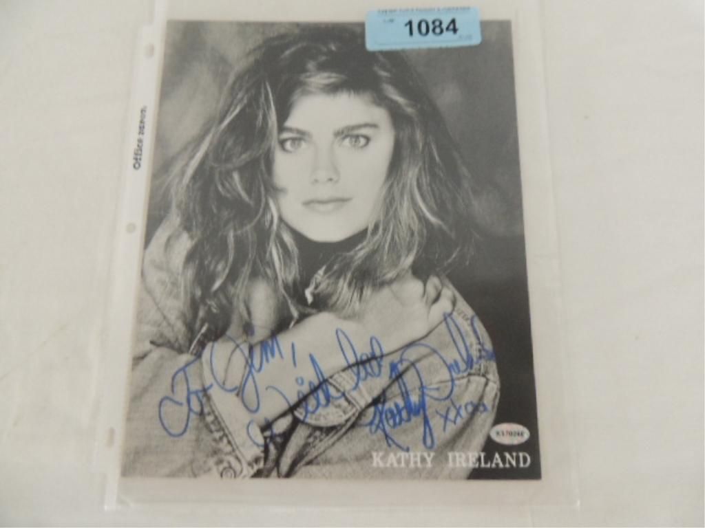 8X10 STUDIO PHOTO AUTOGRAPHED KATHY IRELAND COA. INCLUDES COA FROM PRIMETIME COLLECTIONS #K370260. AS SHOWN. VIEW PICTURE FOR DETAIL. PLEASE BE ADVISED, AND INFORMED REGARDING SIGNATURES OR AUTOGRAPHS THAT WE SELL AT AUCTION: WE ARE NOT AUTHENTICATORS, AND WE DO NOT AUTHENTICATE, OR VALIDATE ANY AUTOGRAPHS OR SIGNATURES THAT WE OFFER AT AUCTION. SOME AUTOGRAPHS OR SIGNATURES MAY COME WITH AN AUTHENTICATION FROM ANY ONE OF LITERALLY HUNDREDS OF AUTHENTICATORS ACROSS THE COUNTRY, AND AROUND THE WORLD. WE DO NOT ENDORSE ANY AUTHENTICATOR, NOR DO WE GUARANTEE THAT ANY AUTOGRAPH OR SIGNATURE IS AUTHENTIC, OR THAT IT WILL PASS AUTHENTICATION BY ANY AUTHENTICATOR. ALL AUTOGRAPHS OR SIGNATURES ARE SOLD