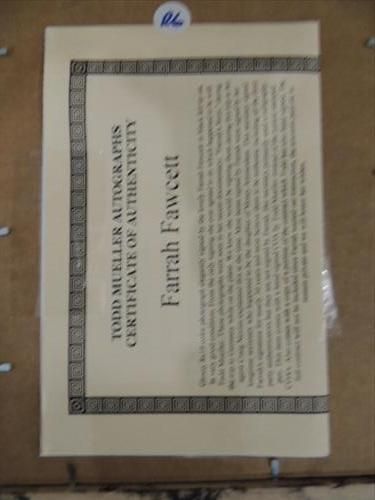8X10 TV STAR PHOTO AUTOGRAPHED FARRAH FAUCETT COA. INCLUDES COA FROM TODD MUELLER AUTOGRAPHS. AS SHOWN. VIEW PICTURE FOR DETAIL. PLEASE BE ADVISED, AND INFORMED REGARDING SIGNATURES OR AUTOGRAPHS THAT WE SELL AT AUCTION: WE ARE NOT AUTHENTICATORS, AND WE DO NOT AUTHENTICATE, OR VALIDATE ANY AUTOGRAPHS OR SIGNATURES THAT WE OFFER AT AUCTION. SOME AUTOGRAPHS OR SIGNATURES MAY COME WITH AN AUTHENTICATION FROM ANY ONE OF LITERALLY HUNDREDS OF AUTHENTICATORS ACROSS THE COUNTRY, AND AROUND THE WORLD. WE DO NOT ENDORSE ANY AUTHENTICATOR, NOR DO WE GUARANTEE THAT ANY AUTOGRAPH OR SIGNATURE IS AUTHENTIC, OR THAT IT WILL PASS AUTHENTICATION BY ANY AUTHENTICATOR. ALL AUTOGRAPHS OR SIGNATURES ARE SOLD