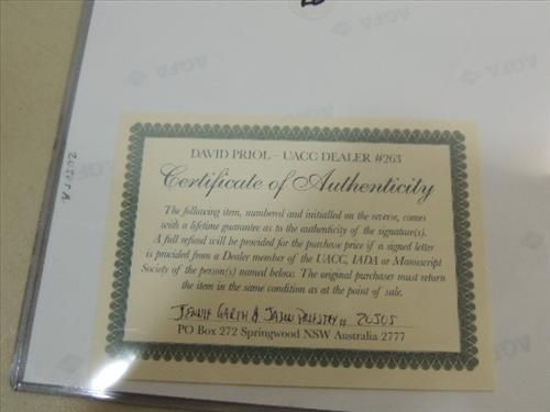 8X10 TV STARS PHOTO 2 AUTOGRAPH JENNIE GARTH & JASON PRIESTLY. INCLUDES COA FROM DAVID PRIOL. AS SHOWN. VIEW PICTURE FOR DETAIL. PLEASE BE ADVISED, AND INFORMED REGARDING SIGNATURES OR AUTOGRAPHS THAT WE SELL AT AUCTION: WE ARE NOT AUTHENTICATORS, AND WE DO NOT AUTHENTICATE, OR VALIDATE ANY AUTOGRAPHS OR SIGNATURES THAT WE OFFER AT AUCTION. SOME AUTOGRAPHS OR SIGNATURES MAY COME WITH AN AUTHENTICATION FROM ANY ONE OF LITERALLY HUNDREDS OF AUTHENTICATORS ACROSS THE COUNTRY, AND AROUND THE WORLD. WE DO NOT ENDORSE ANY AUTHENTICATOR, NOR DO WE GUARANTEE THAT ANY AUTOGRAPH OR SIGNATURE IS AUTHENTIC, OR THAT IT WILL PASS AUTHENTICATION BY ANY AUTHENTICATOR. ALL AUTOGRAPHS OR SIGNATURES ARE SOLD