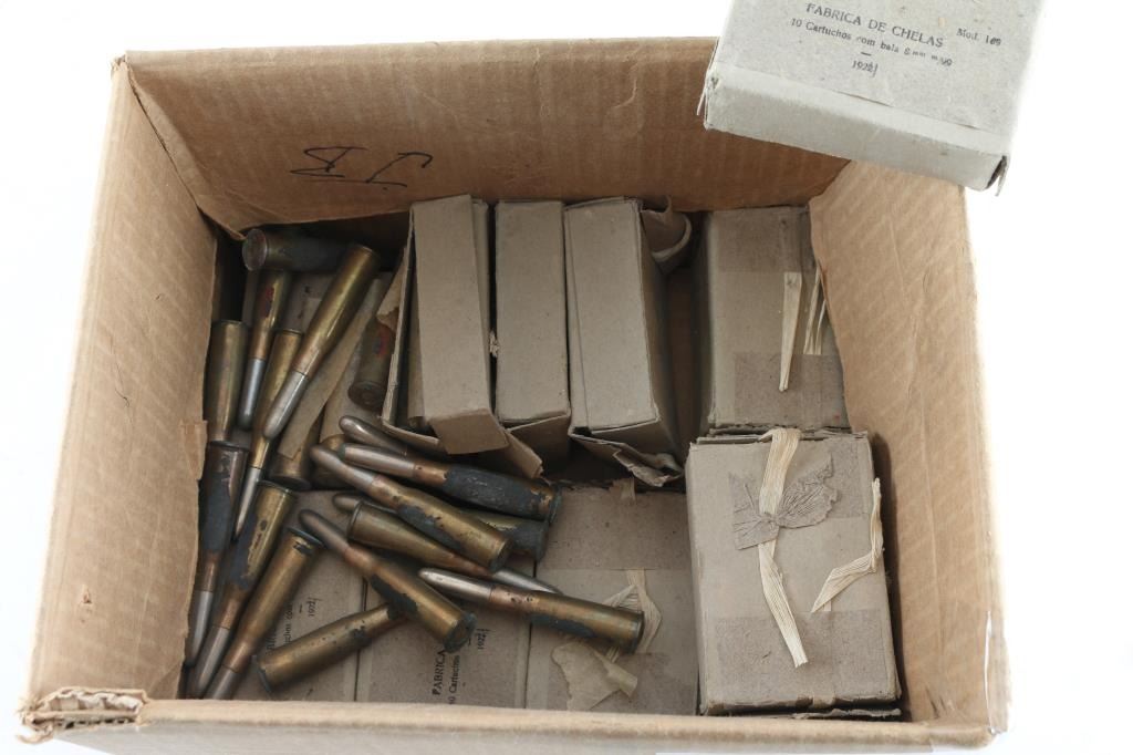 Approx 140 rounds, in cardboard boxes, South American, with corrosion on most cases.