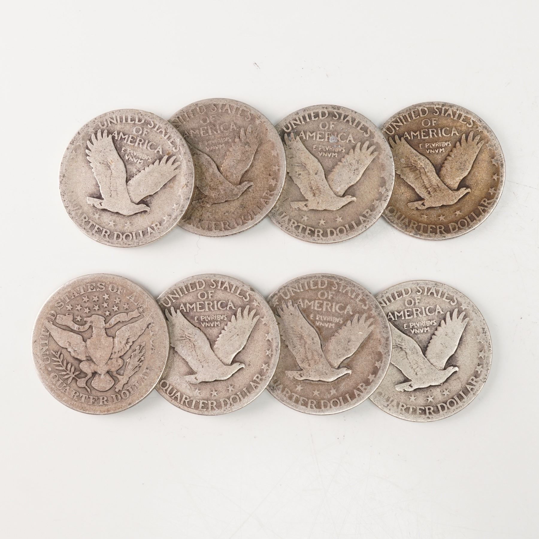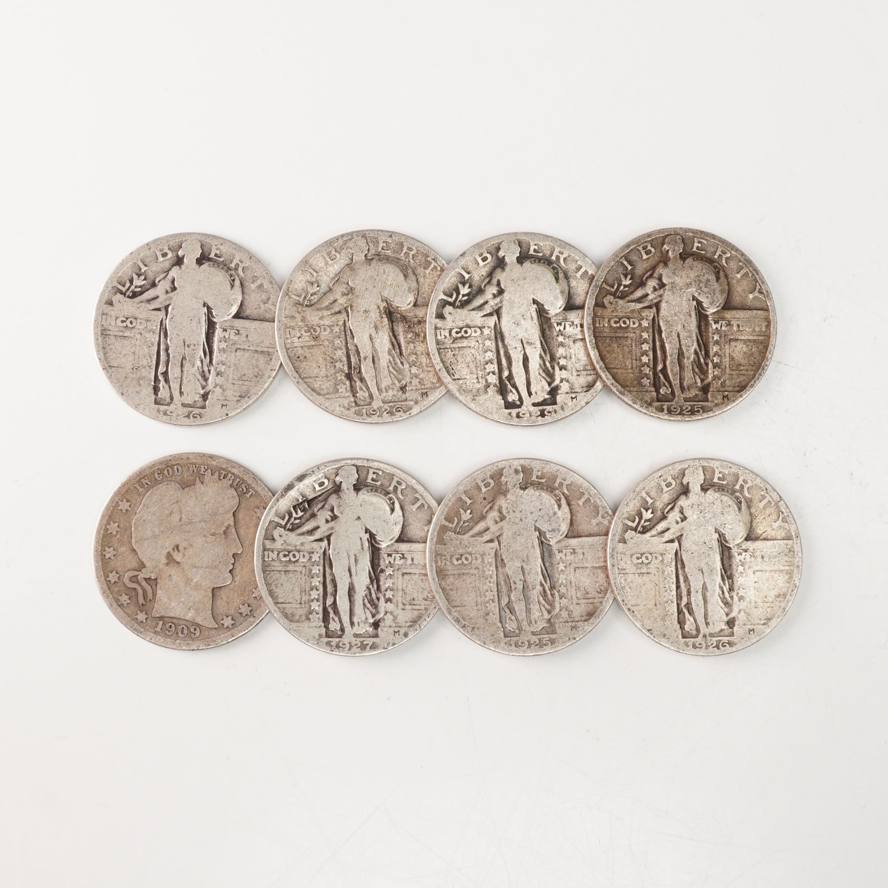 8pc 1909 Barber Quarter & 1925 to 1929 Standing Liberty Quarters