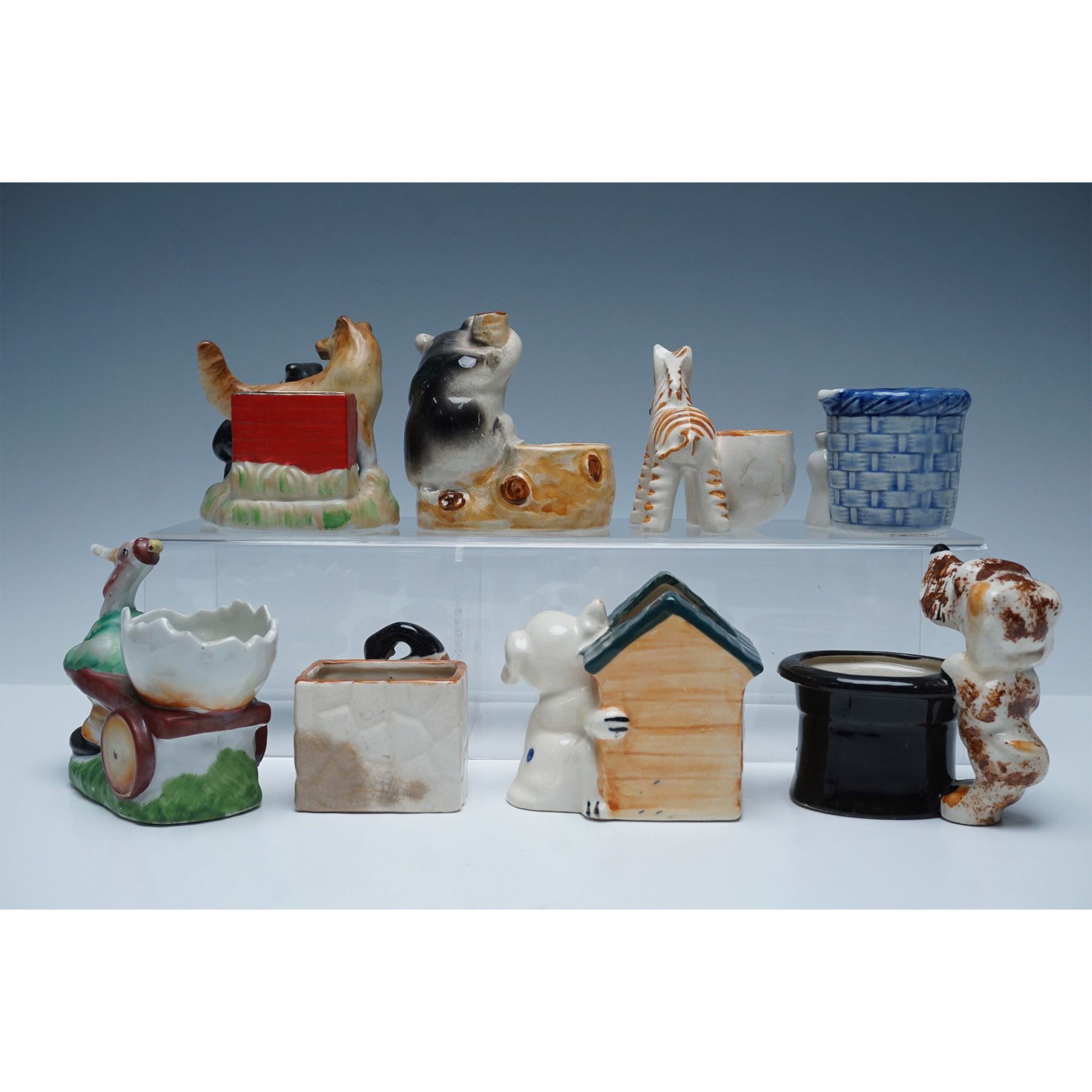 8pc Japanese Ceramic Figural Planters, Toothpick Holders, and Ashtrays
