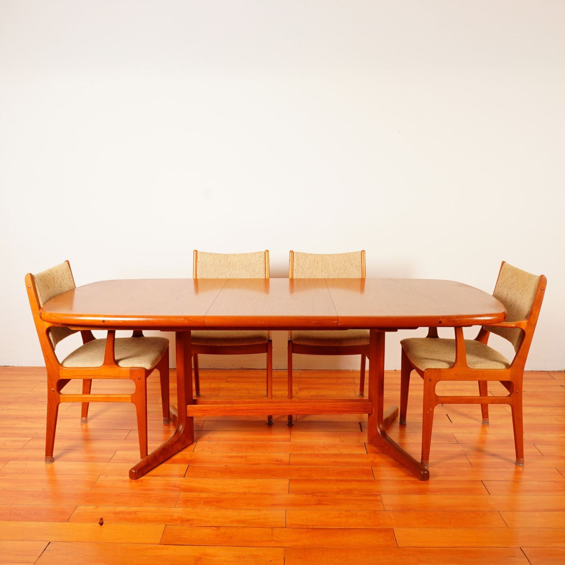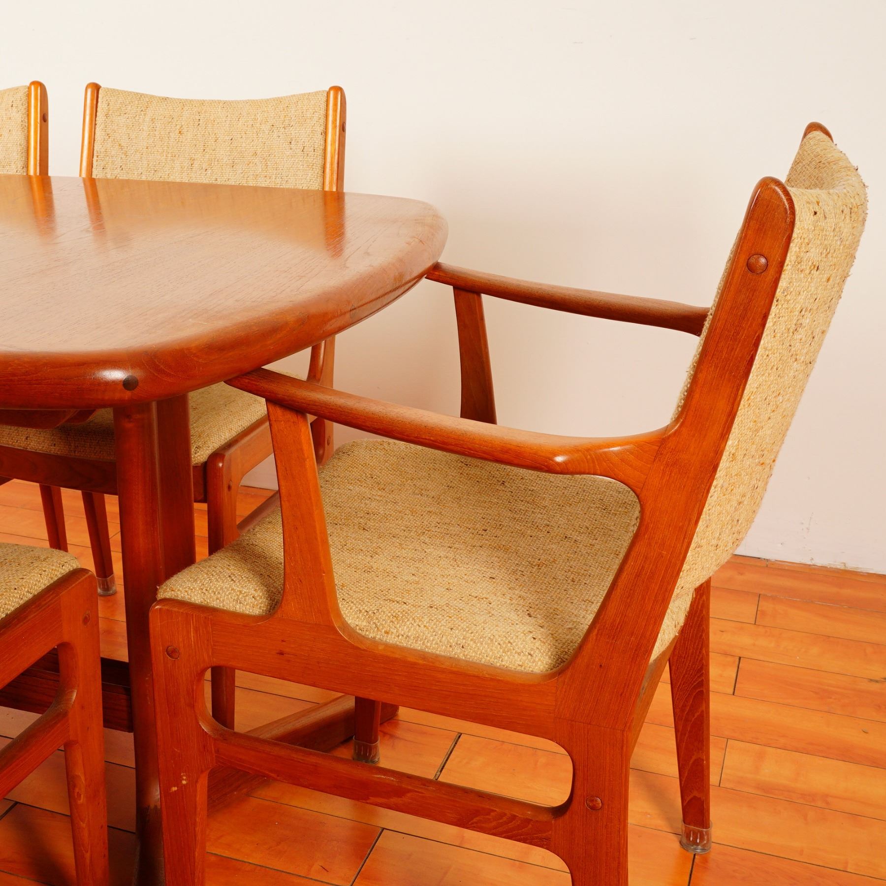 8pc Mid Century Danish Style Teak Dining Set w/ Leaf and Beige Upholstery