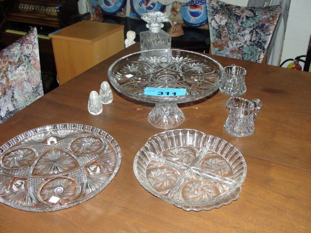 8pcs of assorted pinwheel crystal; cake plate,