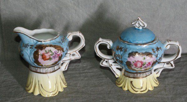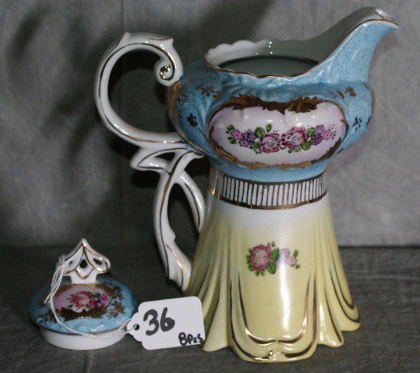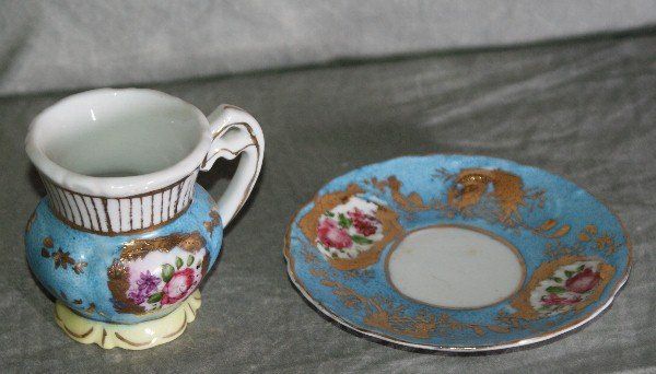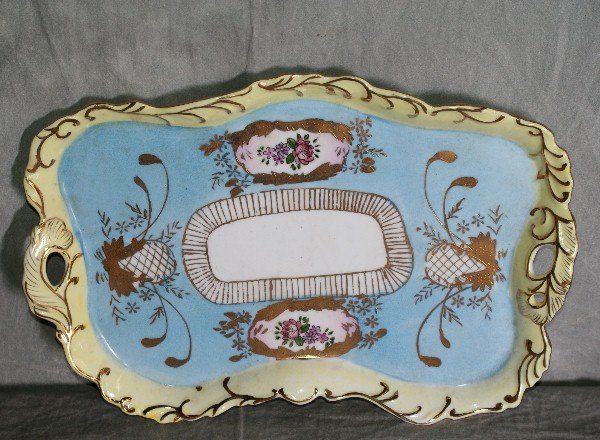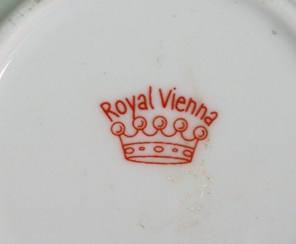 8piece Royal Vienna porcelain painted tea set with tray. Pot H:8" .