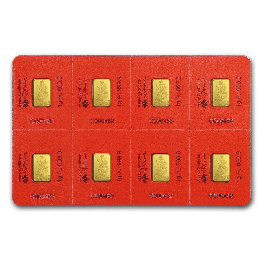 8x 1 gram Gold Bar PAMP Suisse Lunar Rat Multigram+8 (In Assay)