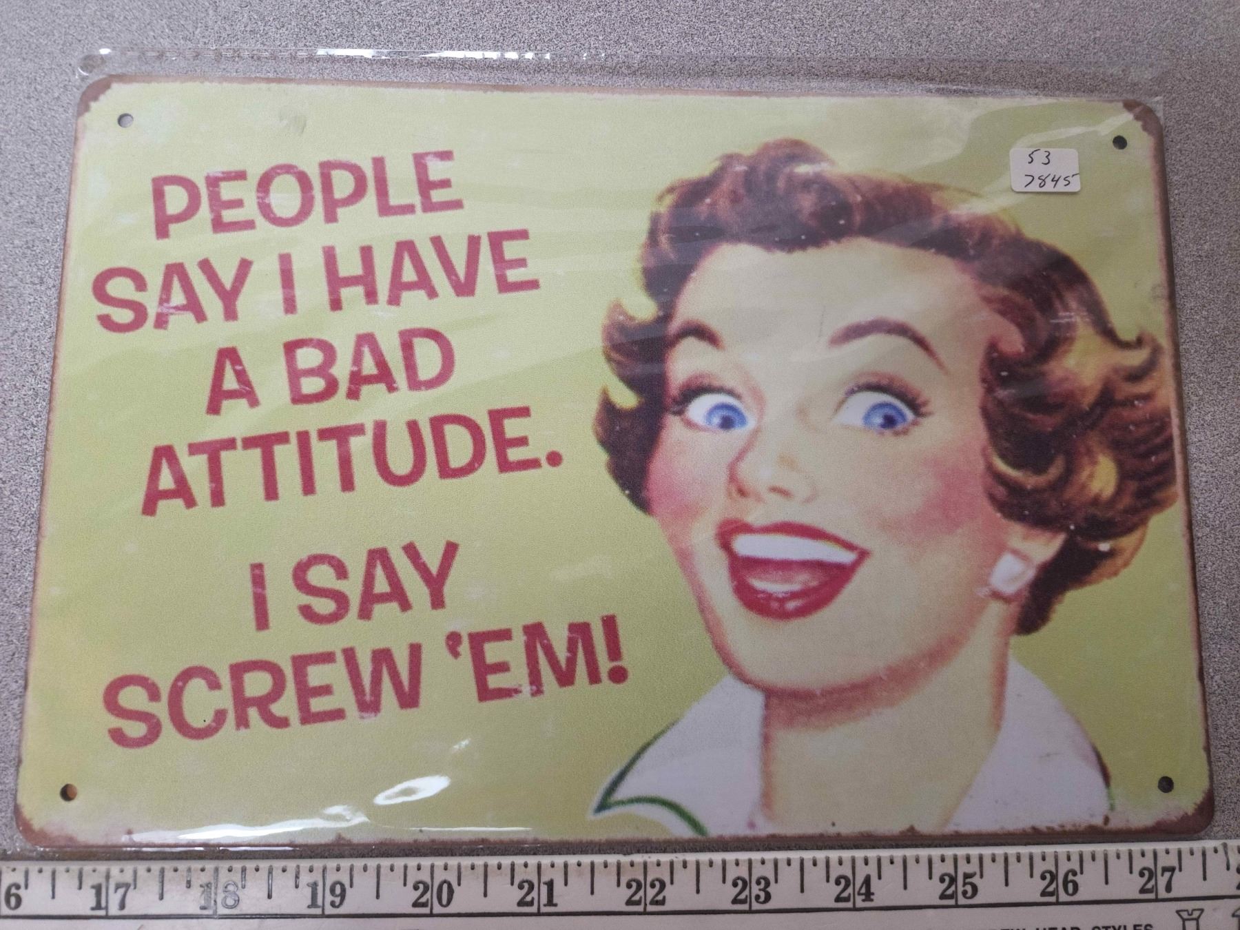 8x 11 3/4 inch Aprox Tin Sign Bad Attitude