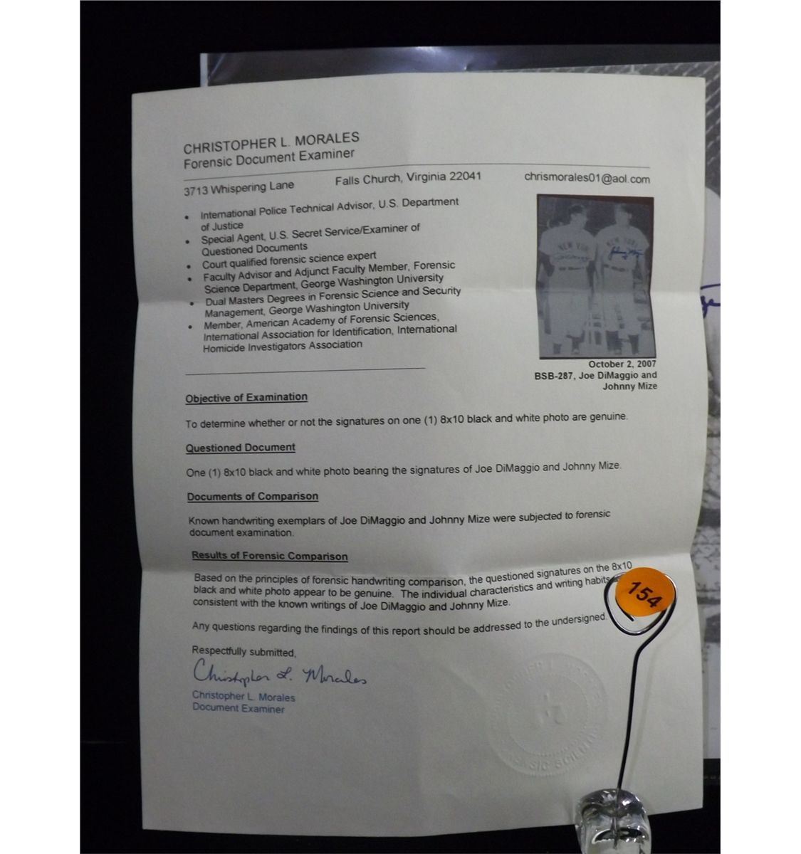 8x10 Photo Autographed by Joe DiMaggio and Johnny Mize. Appraised or estimated retail value $1600. COA by Christopher Morales. All Sales Final. Please see terms and conditions of auction.