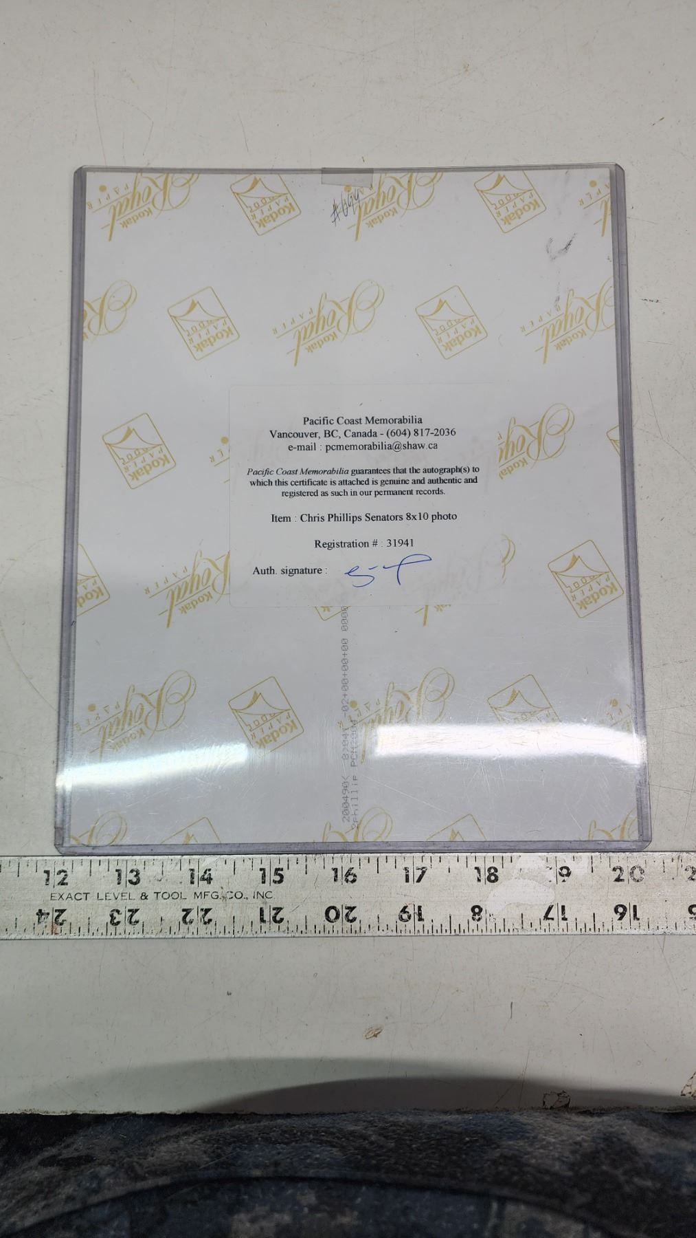 8x10" Signed photo of Christ Phillips, of the Ottawa Senators - Appears to be Authentic