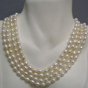 FRESH WATER PEARL STRAND. EACH PEARL MEASURES 8x6 MM. BAROQUE. BLEMISHES VISIBLE. LENGTH: 64 INCHES