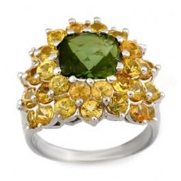 Gemstone: Natural Tourmaline Gemstone color: Green Gemstone quality: Good-to-Very Good Gemstone Cut & Weight: 40 Cushion cut @ 9.0 ctw Metal Purity & Color : 14K Gold-WhiteGold weight: 6.85 grams Ring size (US): 6 Dimension: Approx. 5/8" x 11/16"