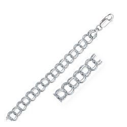This double link solid charm bracelet is crafted in glistening 14K white gold and has a width of 9.0 mm.Rhodium Polish: NoLine Item Type: GoldMetal Name: White GoldMetal Content: 14KStyle Name: CharmWidth: 0.35 iClasp: Lobster ClaspChain Type: Link