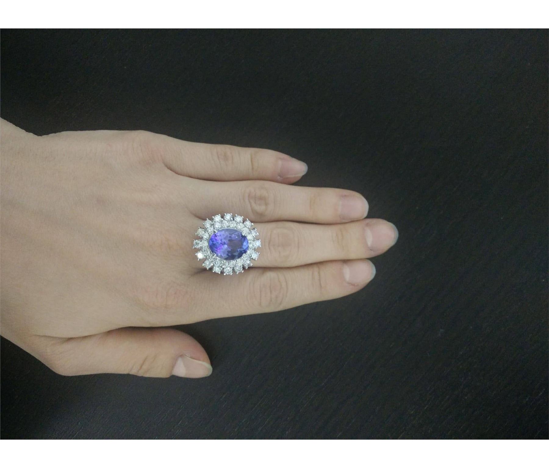 9.00 CTW Tanzanite 18K White Gold Diamond Ring