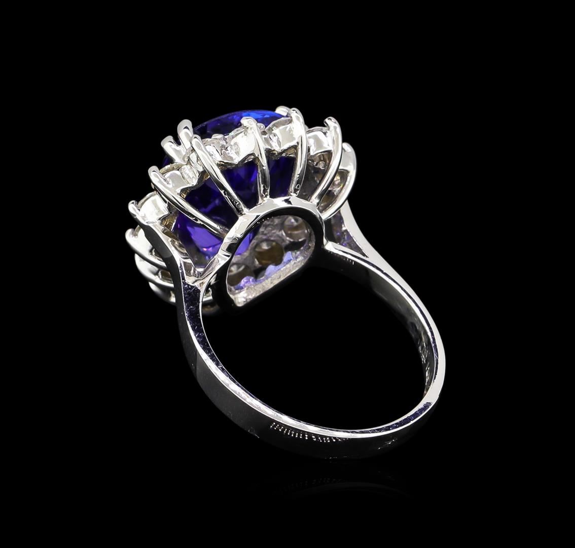 18K White Gold 9.00CT Tanzanite 1.35CT Diamond Ring. Description: Metal: 18k solid white gold. Face Measurements: 17 x 20mm. Size: 7. Shank Width: 2mm. Finish: bright polish. Total Item Weight: 8.0 grams. Markings: stamped 18K. Country Made: USA. Main Stone: tanzanite. Quantity: 1. Shape: pear. Color: blue. Carat Total Weight: 9.00. Measurements: 11 x 15mm. Treatment: heating. Setting: prong. Hue: blue. Saturation: moderately strong. Tone: light medium. Clarity: type 2. Cut: very good. Secondary Stone: diamond. Quantity: 15. Shape: round. Color: white. Carat Total Weight: 1.35. Measurements: 2.5mm. Treatment: none. Setting: prong. Color Grade: G-H. Clarity: SI1-SI2. Cut: very good. Excellent Workmanship. Gemstones graded in the mounting. BHGL Appraised at $38,790.00.