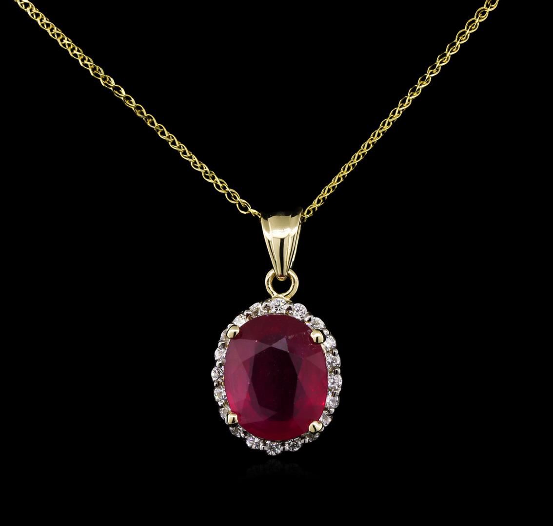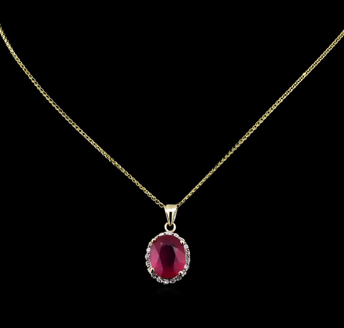 One pendant featuring: 14KT yellow gold weighing 2.89 grams containing one ruby with a total weight of 9.00ct and diamonds with a total weight of 0.54ct.
