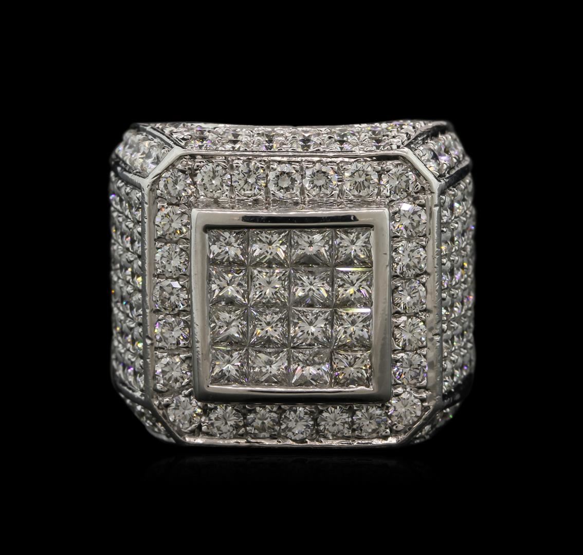 One electronically tested 14KT white gold ladies cast diamond ring with a bright polish finish. Condition is new. Containing: Two Hundred Sixteen prong set round brilliant cut diamonds, measuring 2.50 - 1.30 x 1.14mm (depth est.) approximate total weight of 216 Stones = 5.98ct. Clarity: VS-2 to SI-1. Color: G - H, Cut is Good. Sixteen invisible set princess cut diamonds, measuring 2.80 x 2.80 x 2.10mm (depth est.) approximate total weight of 16 Stones = 3.02ct. Clarity: VS-1. Color: G - H, Cut is Very Good. Diamonds are graded in the mounting, unless otherwise stated. Total Weight of Diamonds 9.00ct. Total Weight of Ring 25.70 grams. GGL Appraised at $18,920.00.