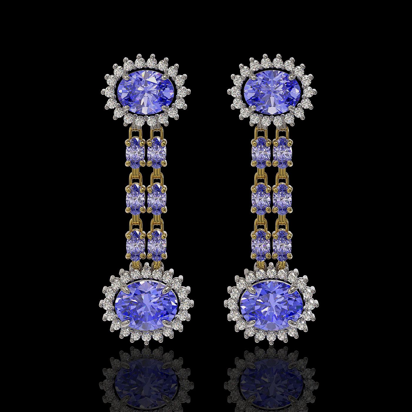 REF-227X3A - SKU: 44293 ---- 9.01 ctw Tanzanite & Diamond Earrings 14K Yellow Gold