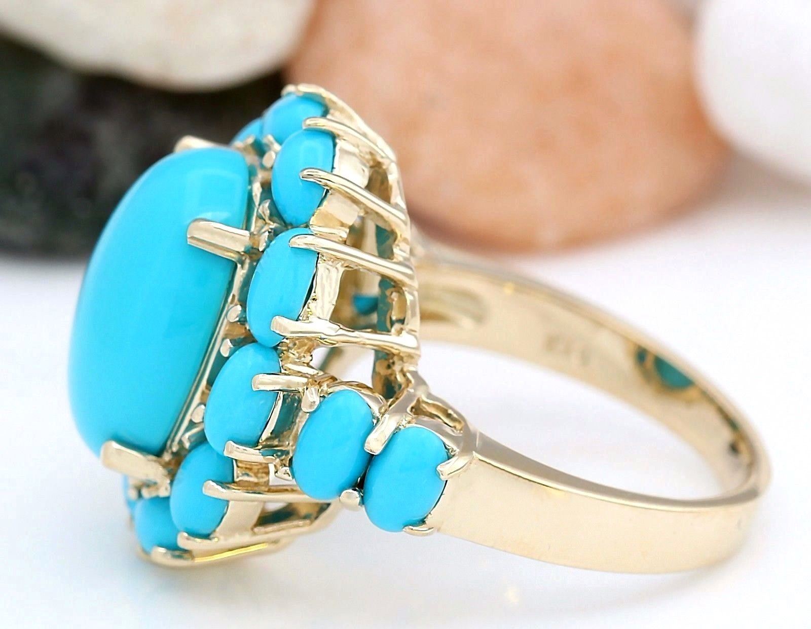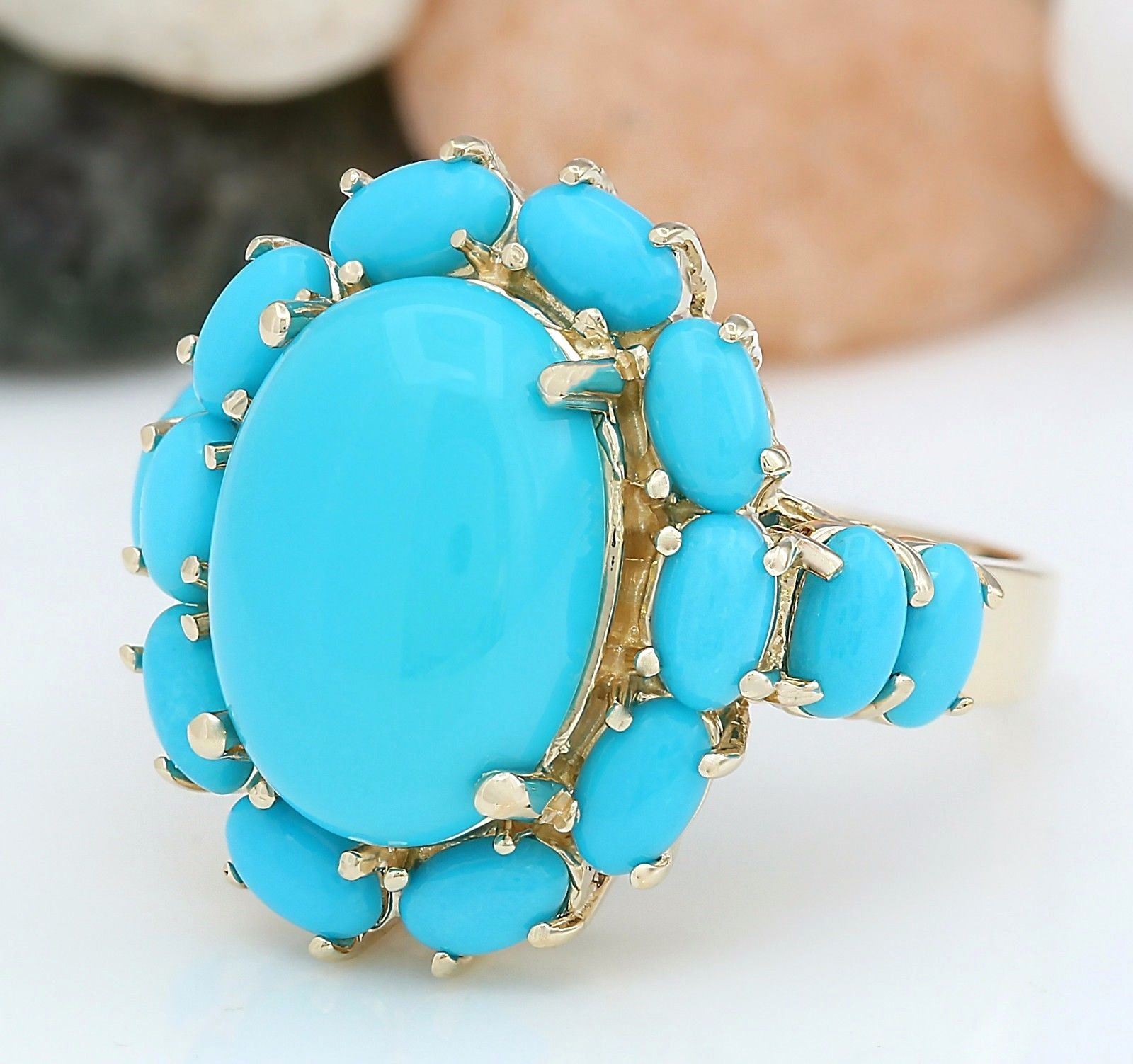 9.02 Carat Natural Turquoise 18K Solid Yellow Gold Diamond Ring