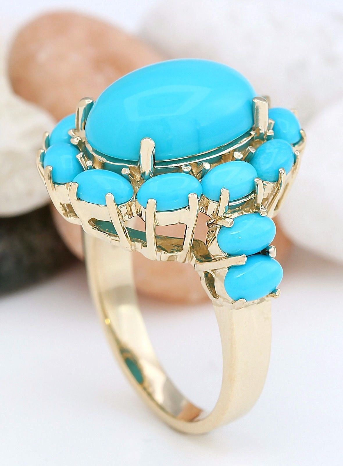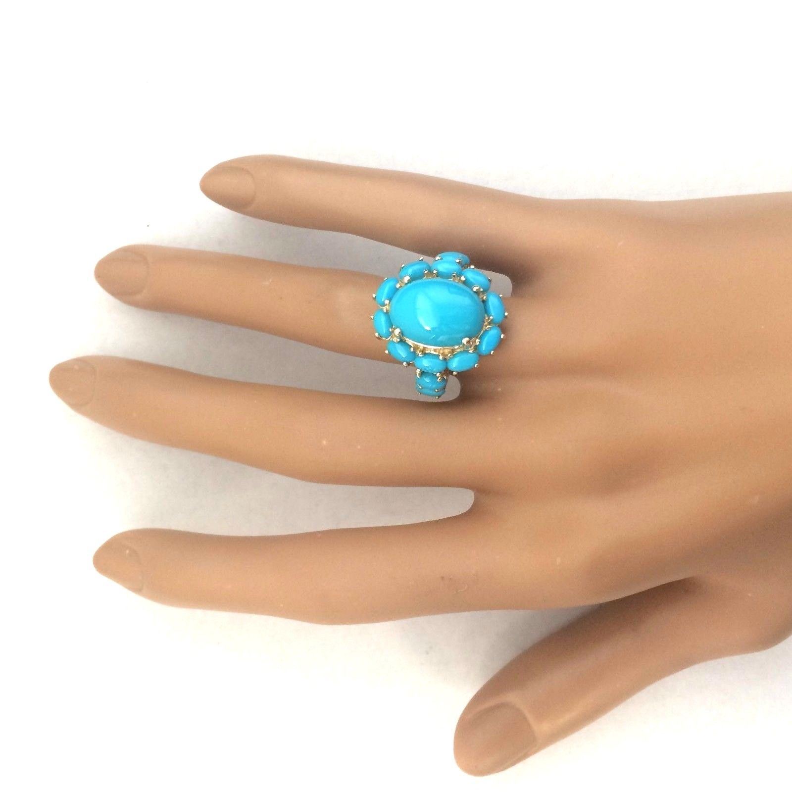 9.02 CTW Natural Turquoise 18K Solid Yellow Gold Ring