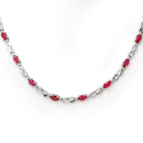REF-94M5H -11402 ---- 9.02 CTW Ruby & Diamond Necklace 10K White Gold ---- Luxury Designer Brand Necklace Appraised at $6,750 Certificate Number US11402 10k White gold, Necklace Size is 16 Incehs, Necklace measuring approx. 16" x 1/8", weighing in total approx. 10.5 grams. Made in the USA and is stamped 10k, Main stone 9 carat total weight containing 24 pieces of Mid-Opaque-Deep Red color with AAA quality Oval shape cut Ruby , Stone #2 0.02 carat total weight containing 2 pieces of H-I color with VS/SI quality Round shape cut Diamond