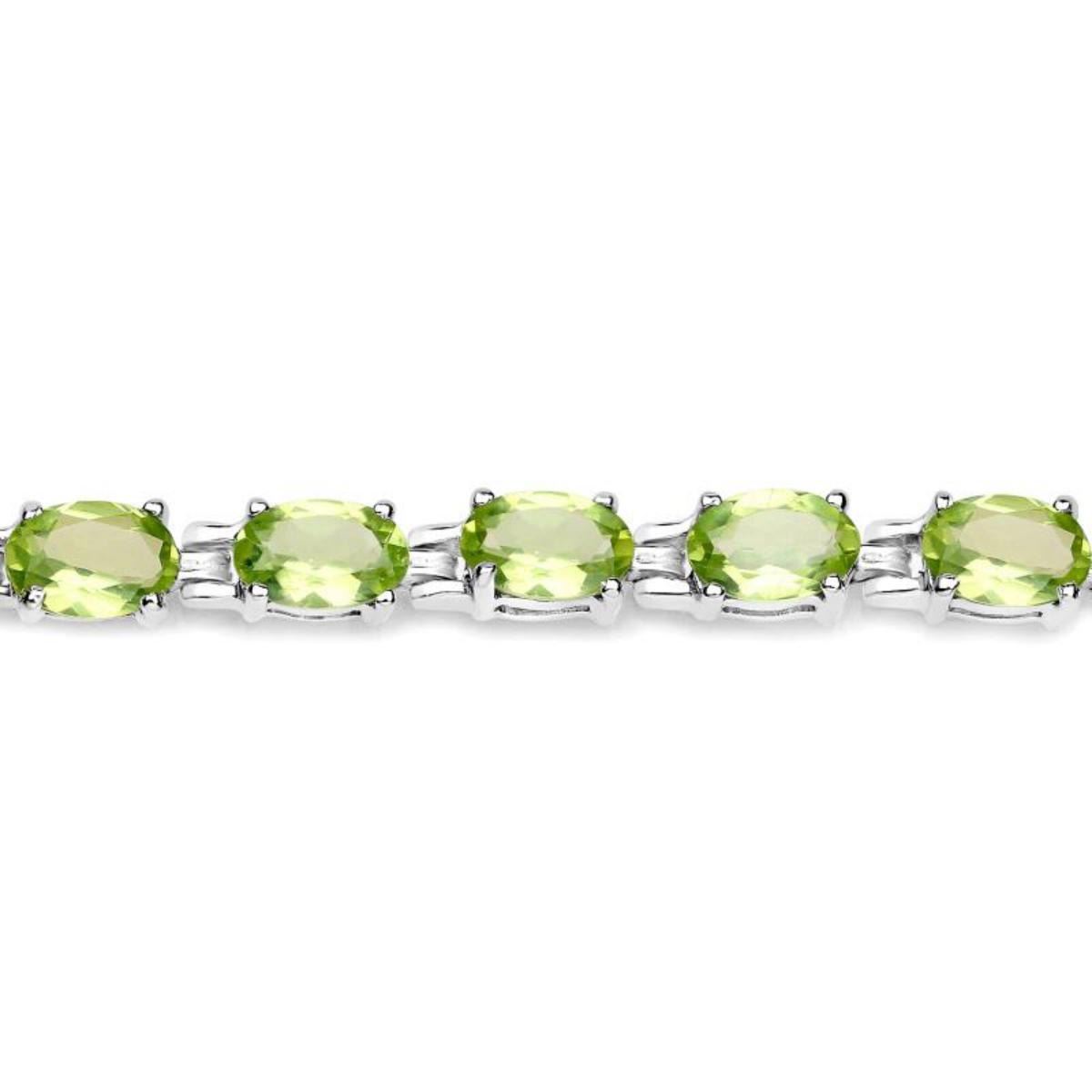 This is a 9.03 Carat Genuine Peridot .925 Sterling Silver Bracelet measuring 7.25 inches in length with a total gross weight of 10.09 (gm) | Gemstone Info: Peridot: Oval/6x4mm 21/9.03 ctw | Metal Info: .925 Sterling Silver weighing 8.284 (gm).