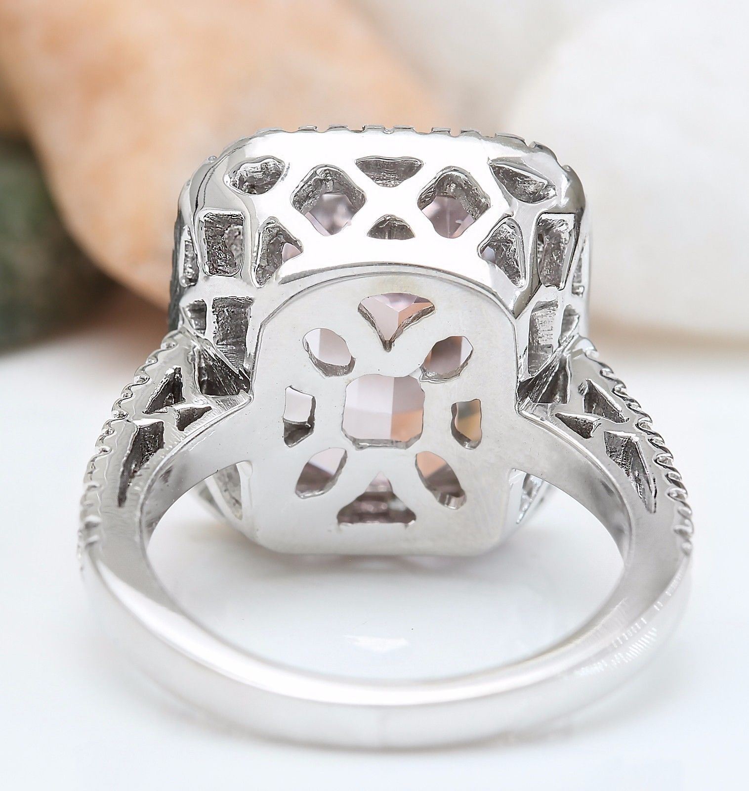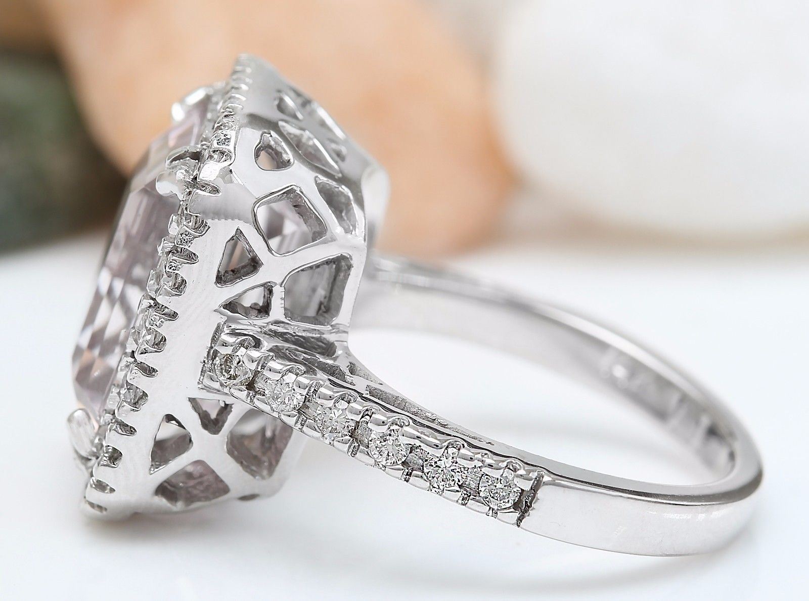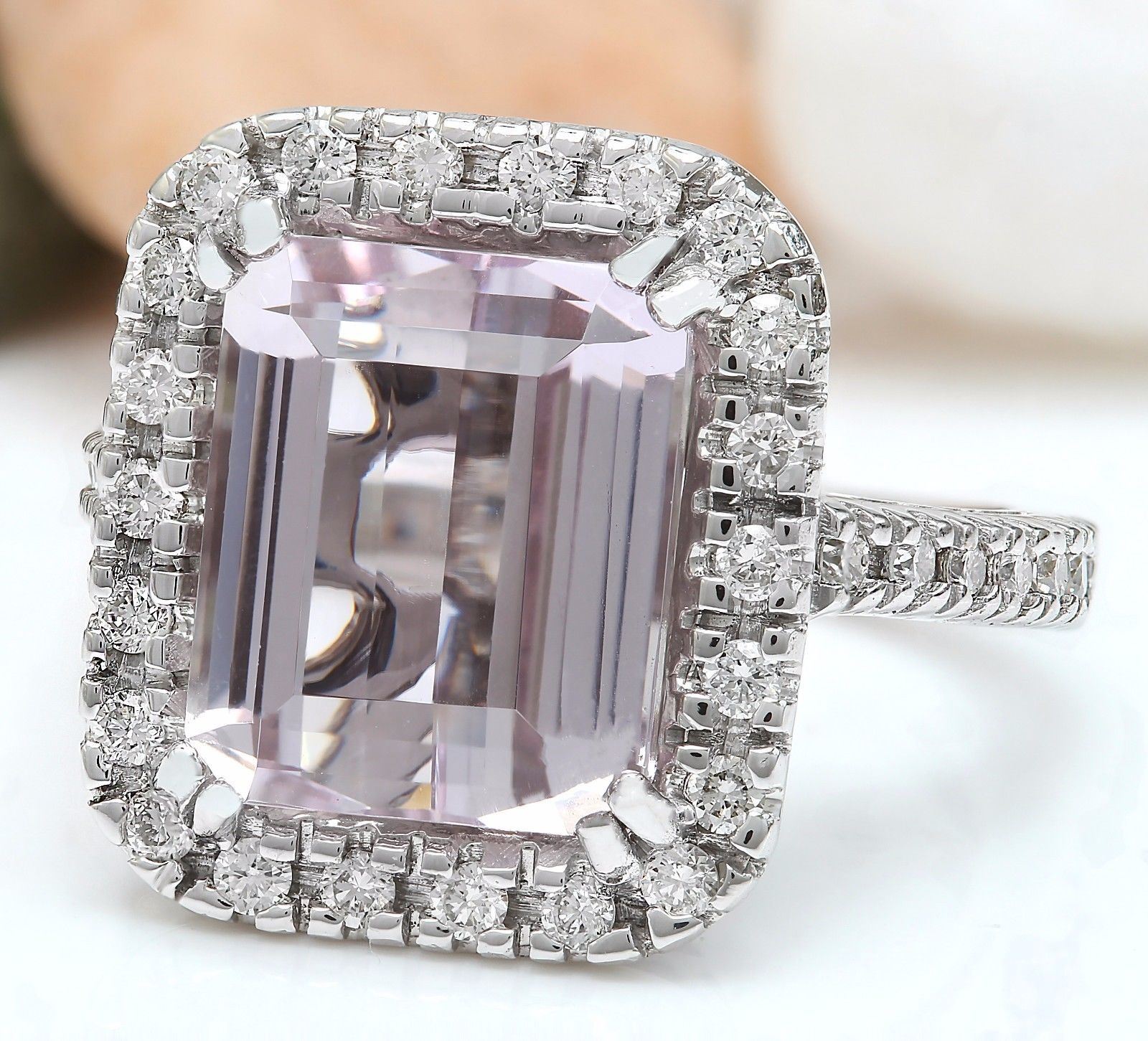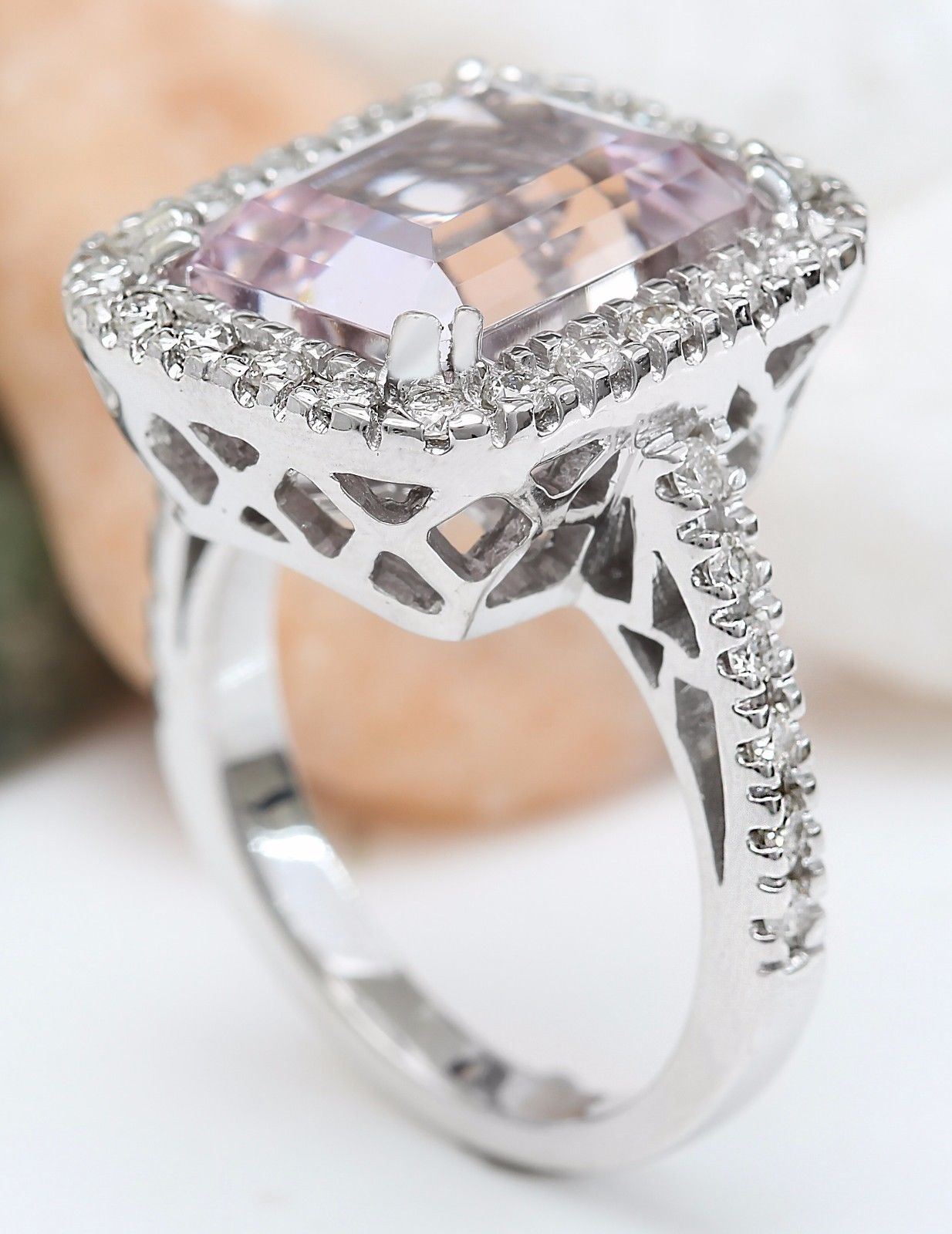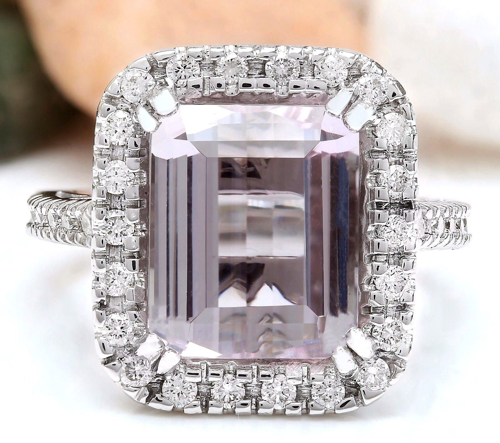 9.04 Carat Natural Kunzite 14K Solid White Gold Diamond Ring
