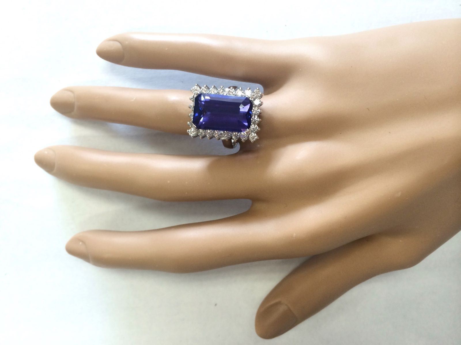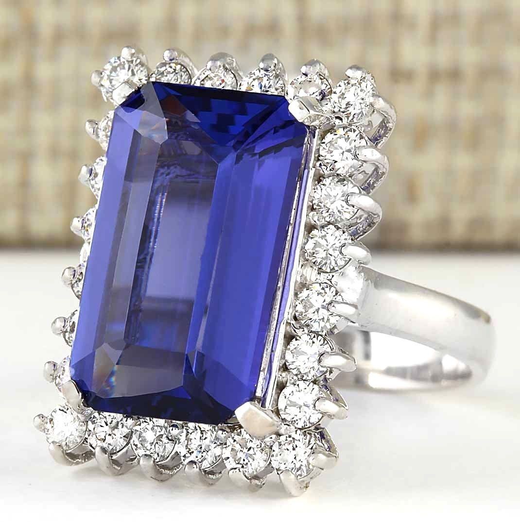 9.05 CTW Natural Blue Tanzanite And Diamond Ring 14K Solid White Gold